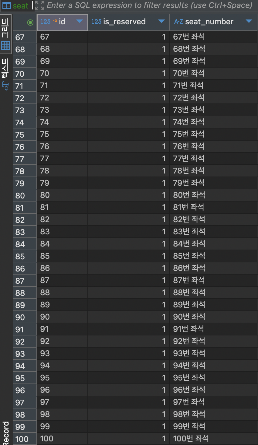 | 좌석(Seat) DB 결과 | 예매(Reservation) DB 결과 |