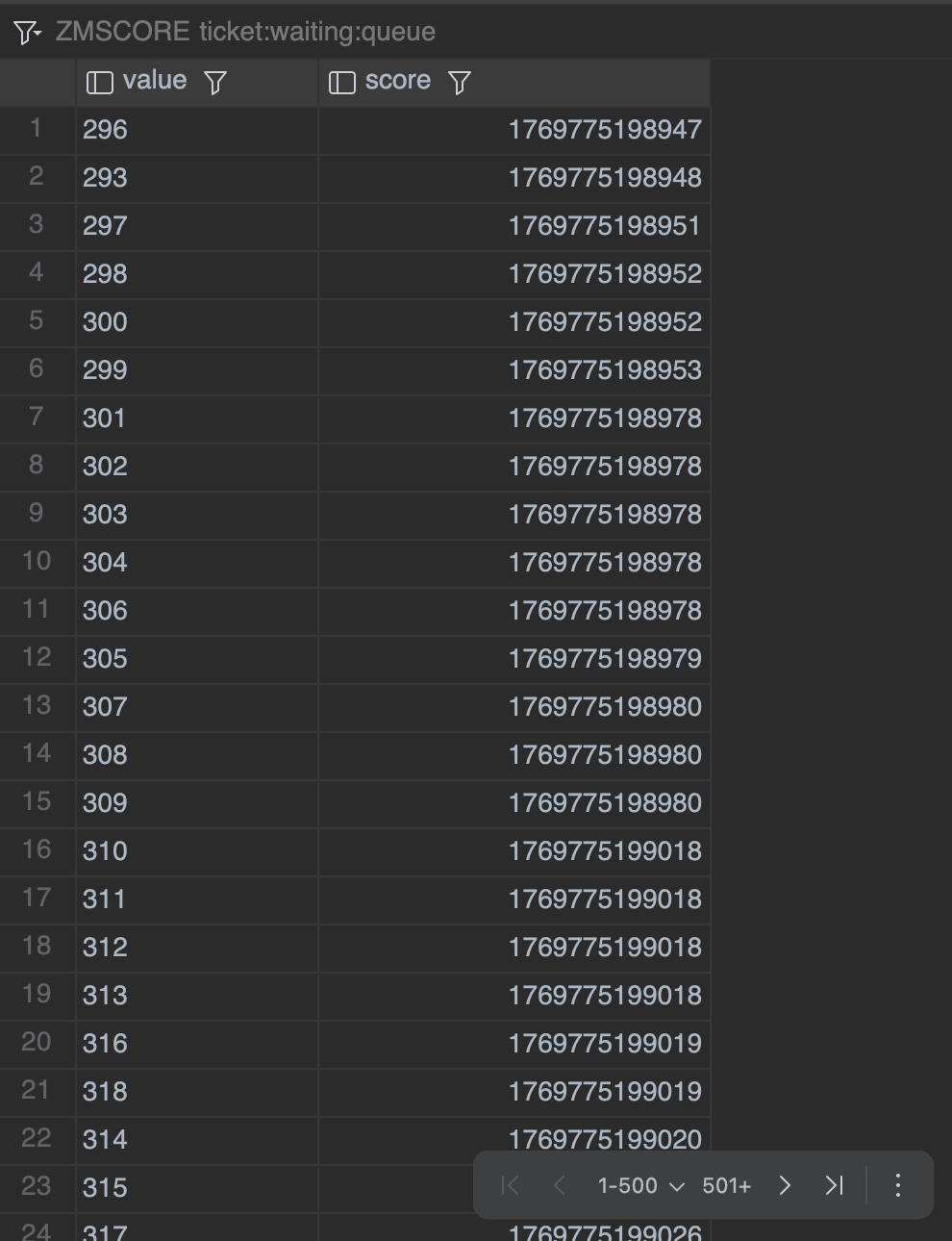 Score로 하여 ZSet에 저장합니다. 이는 자연스럽게 FIFO 구조를 형성합니다. - 스케줄링: 1초마다 실행되는 스케줄러가 현재 활성 유저(Active User) 수를 확인하고, 여유 공간만큼 대기열 유저를 활성 상태로 전환합니다.