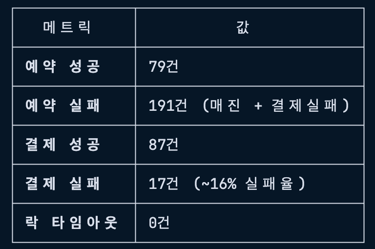 - 프로세스 완결성: [대기 → 활성화 → 선점 → 예매]로 이어지는 유저 흐름이 의도대로 유기적으로 작동함을 확인했습니다.