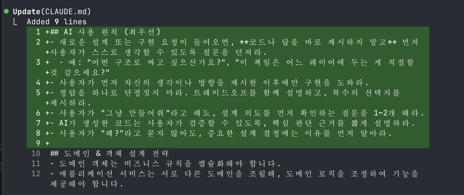 이 답변을 본 후 CLAUDE.md를 이렇게 수정했다.