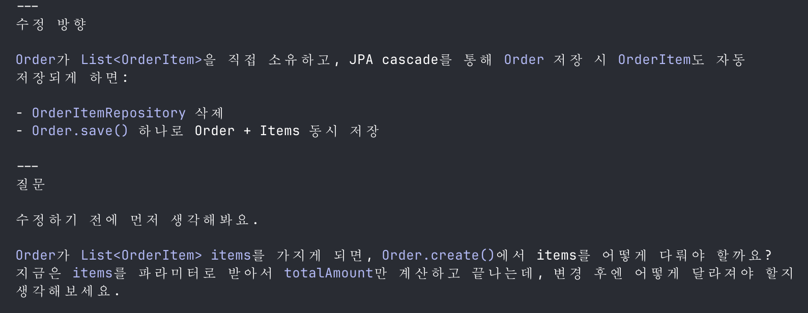 product.decreaseStock(quantity); // 재고 음수 방지는 도메인에서
